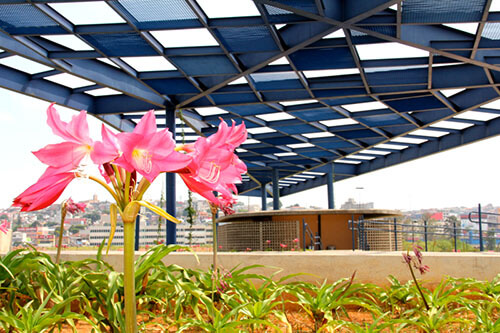 Nativas plantadas e regeneradas: Pau-ferro, Ipê-amarelo, Pitangueira, Pau-brasil, Manacá-da-serra, Sibipiruna (Caesalpinia pluviosa)